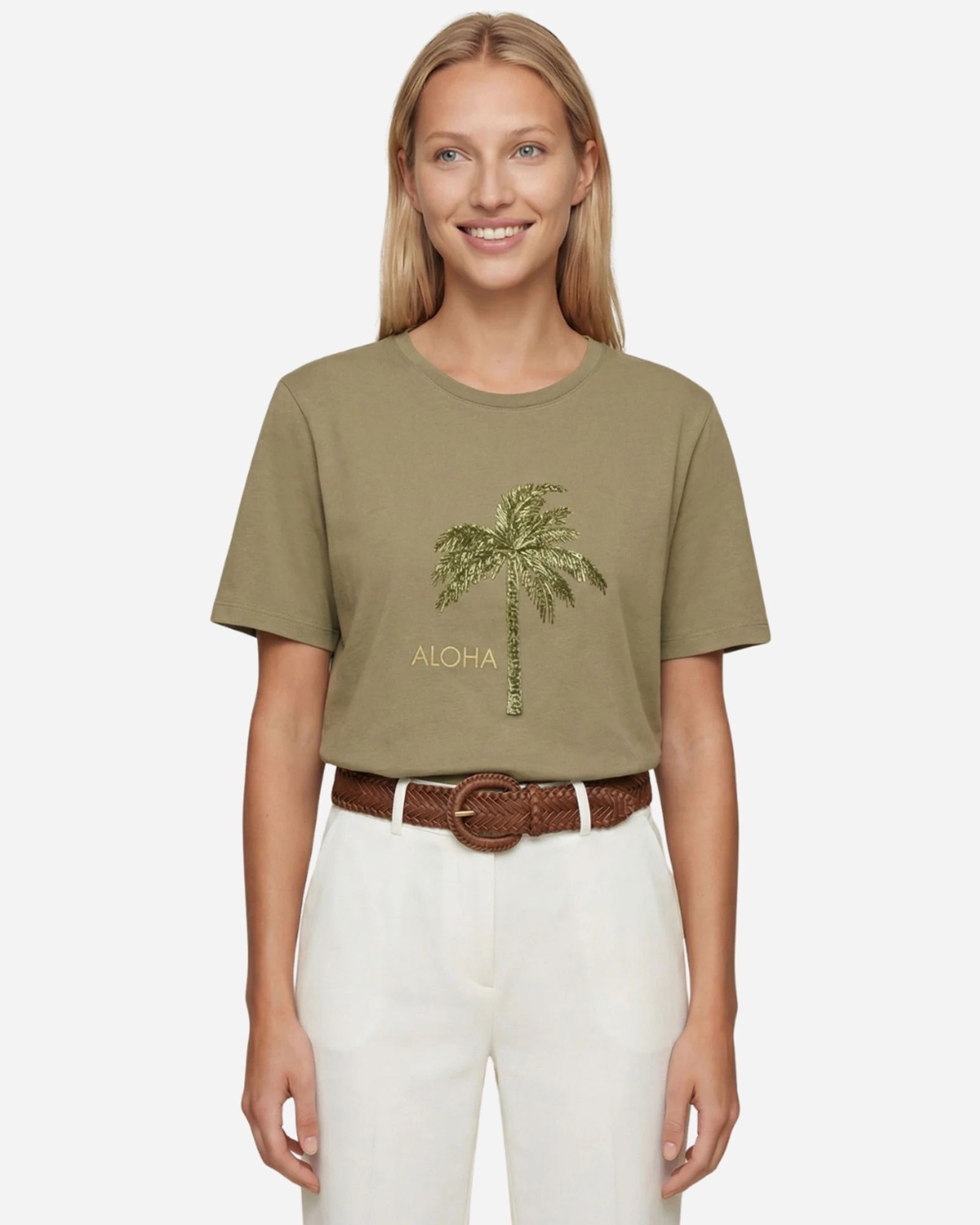 T-SHIRT BRODERIE PALMIER BARLEY GREEN