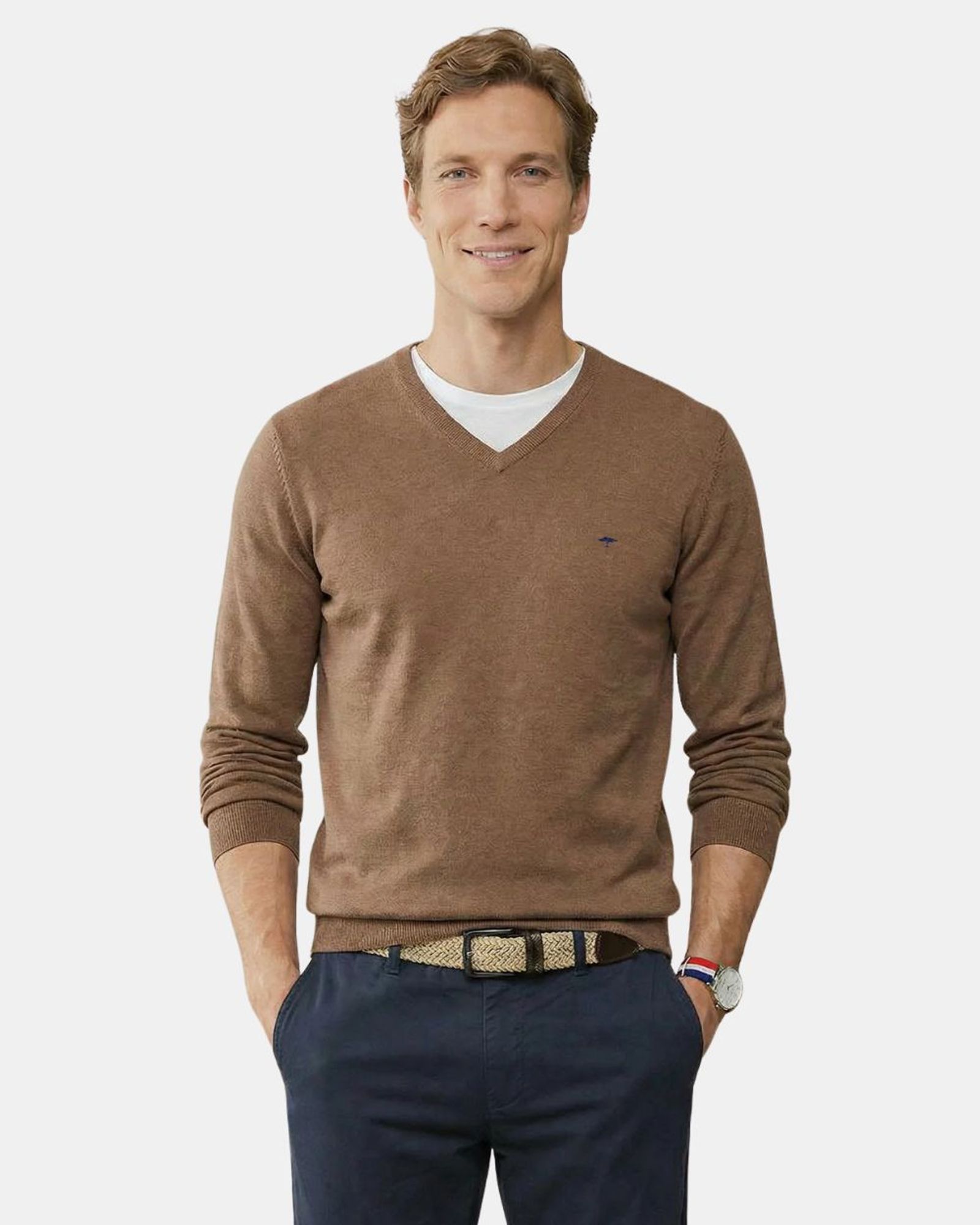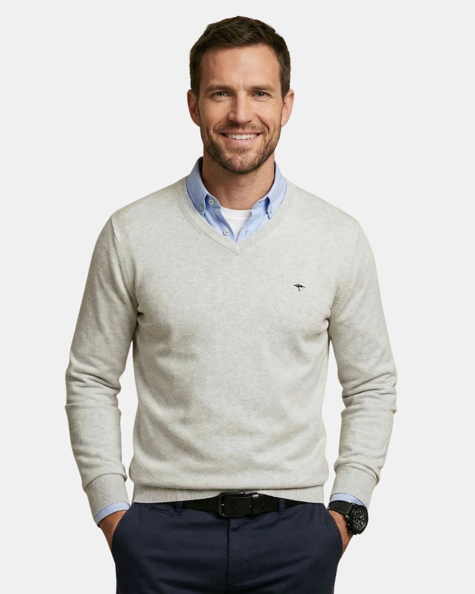 Véritable incontournable de la marque Fynch-Hatton, ce pull uni en 100 % coton séduit par sa simplicité et sa qualité. Facile à associer, il se porte aussi bien sur une chemise que sur un t-shirt pour un style naturellement décontracté. Sa maille fine, douce et soignée offre un confort optimal tout au long de la journée. La coupe est subtilement ajustée à la base et rehaussée d’un bord-côte pour une finition impeccable. Doté d’une encolure en V, de manches longues et d’un discret logo brodé sur la poitrine, ce modèle allie élégance et modernité.