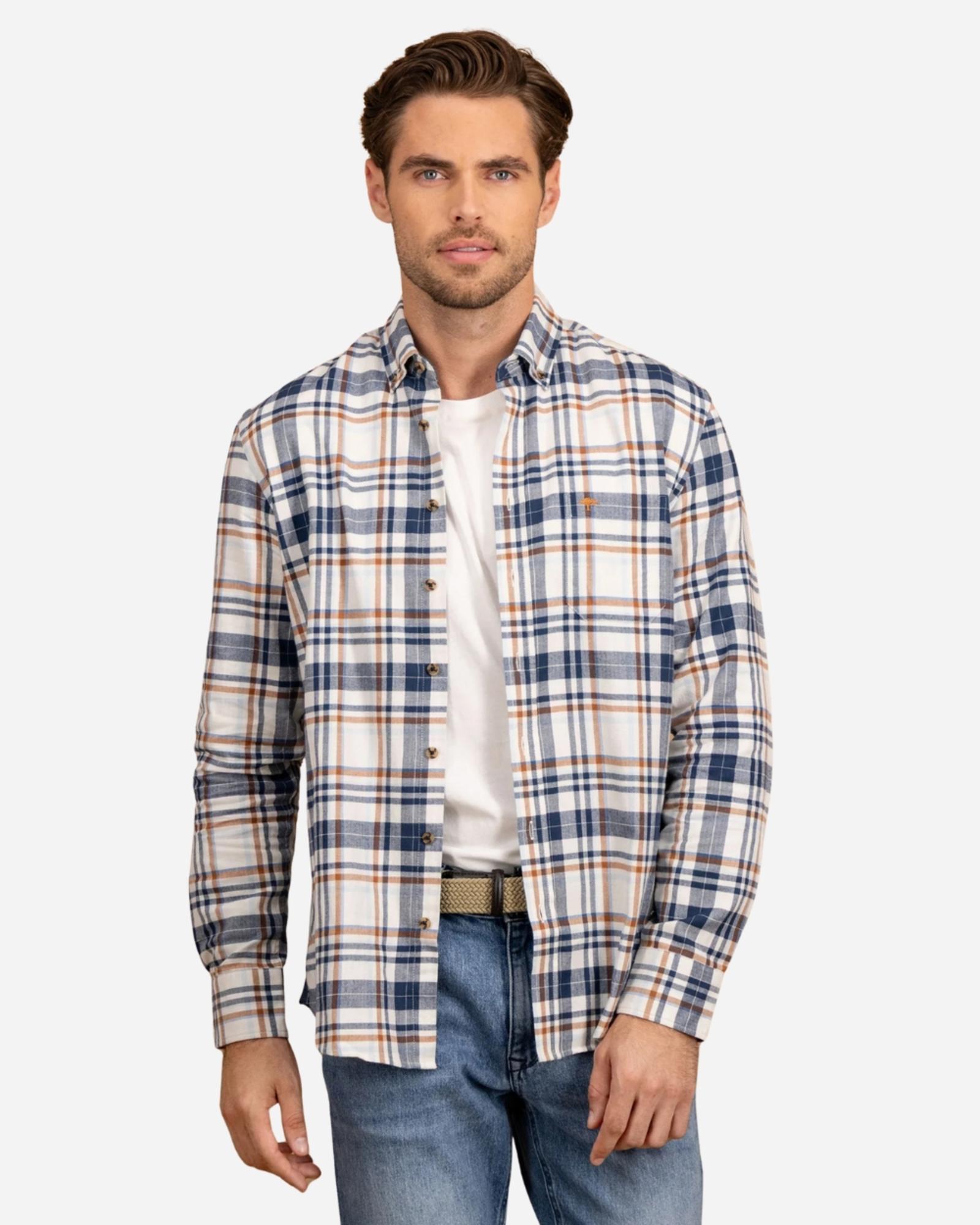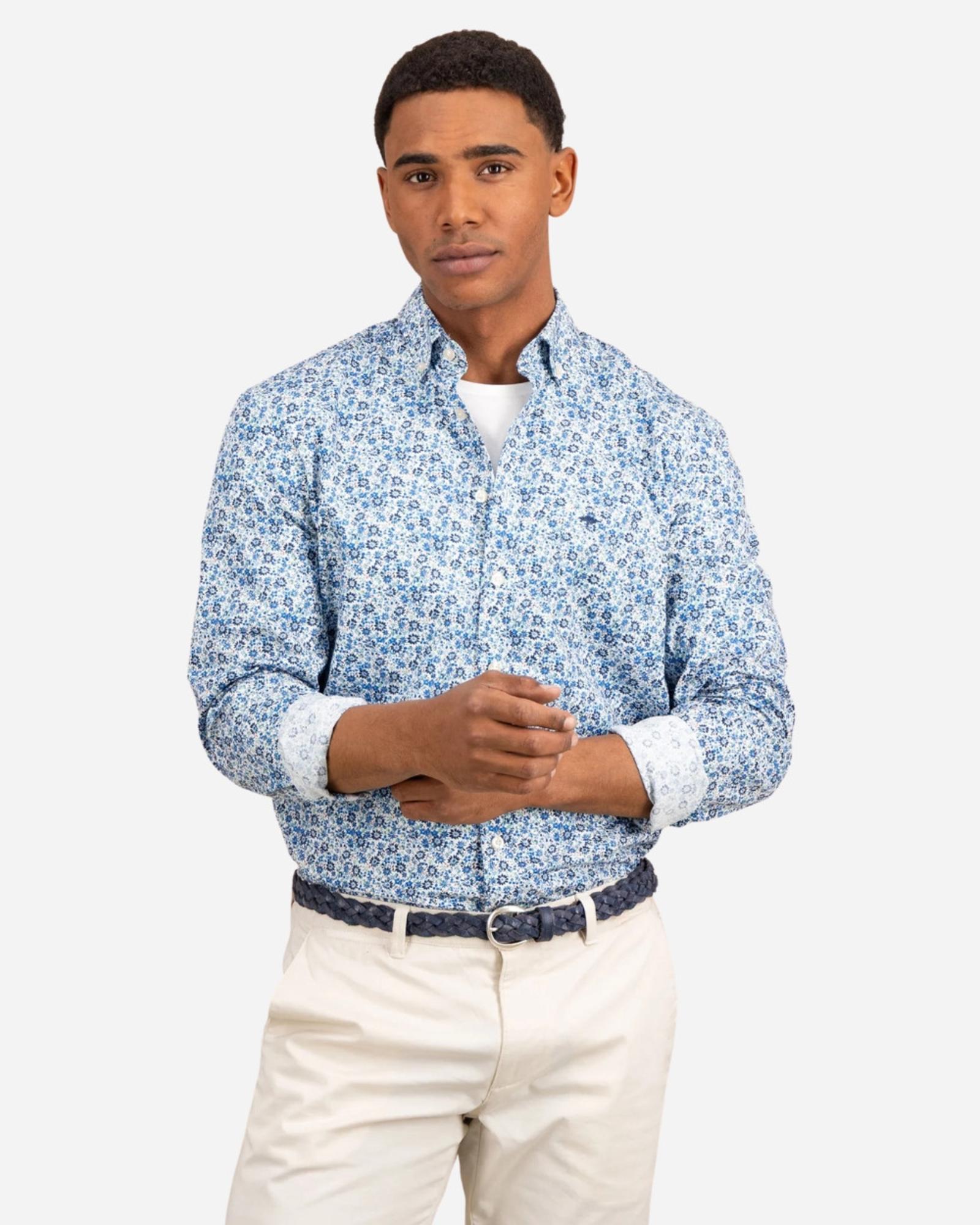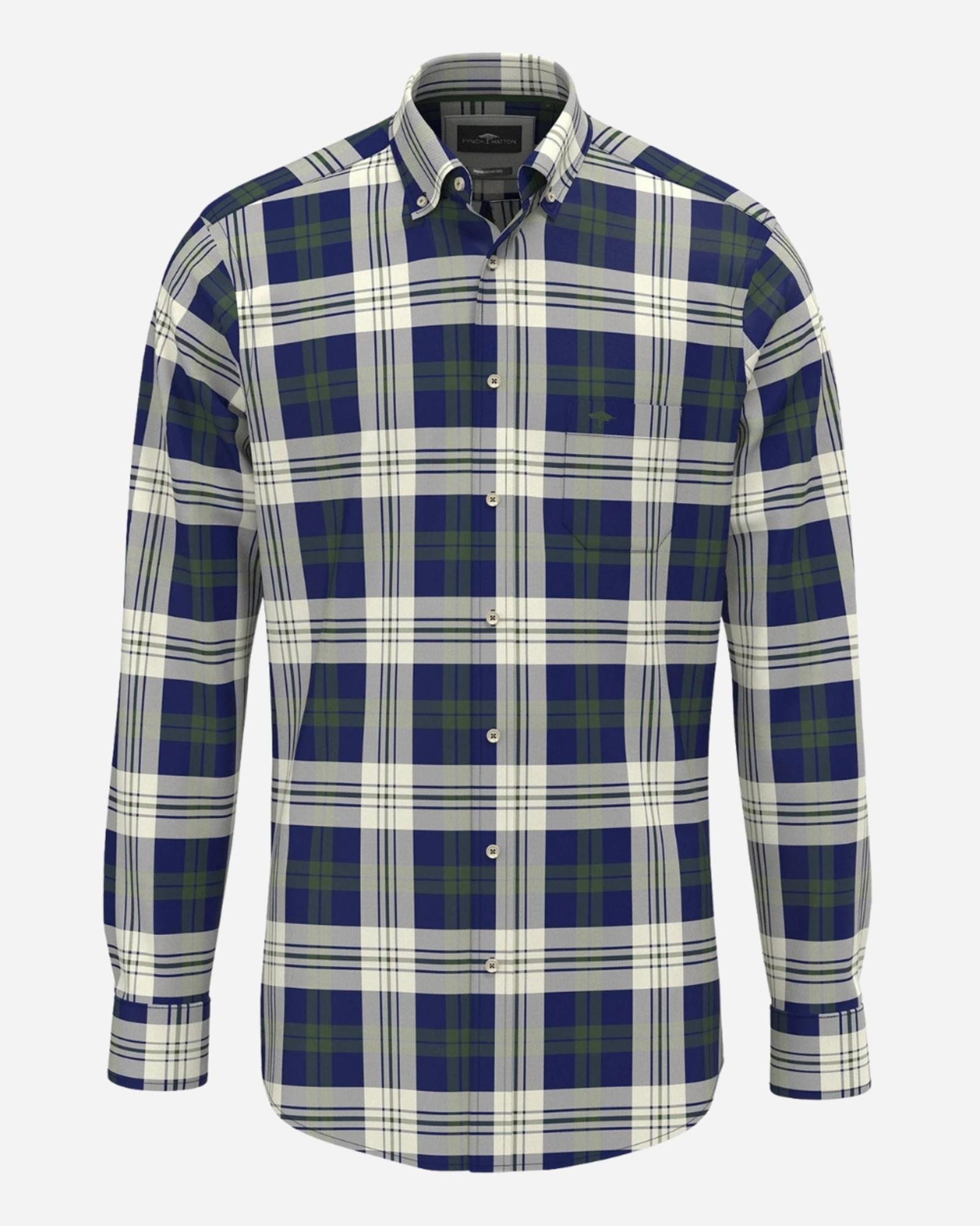 Son design à rayures bleu marine apporte une touche sophistiquée et dynamique, idéal aussi bien pour le bureau que pour une sortie chic en ville. Le logo Fynch-Hatton subtilement disséminé sur la chemise affirme votre goût pour l’excellence et l’authenticité, avec cette signature emblématique qui fait toute la différence. Portée avec un chino beige pour une allure élégante ou un jean brut pour une décontraction maîtrisée, cette chemise s’adapte à toutes vos envies. Style, confort et qualité premium, elle coche toutes les cases. N’attendez plus, adoptez la signature Fynch-Hatton dès maintenant !