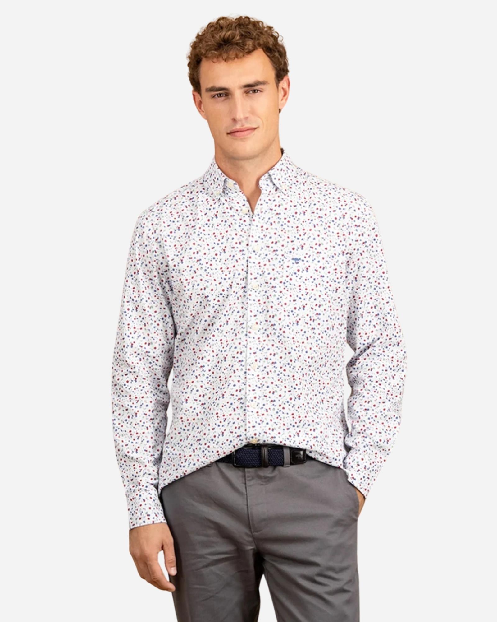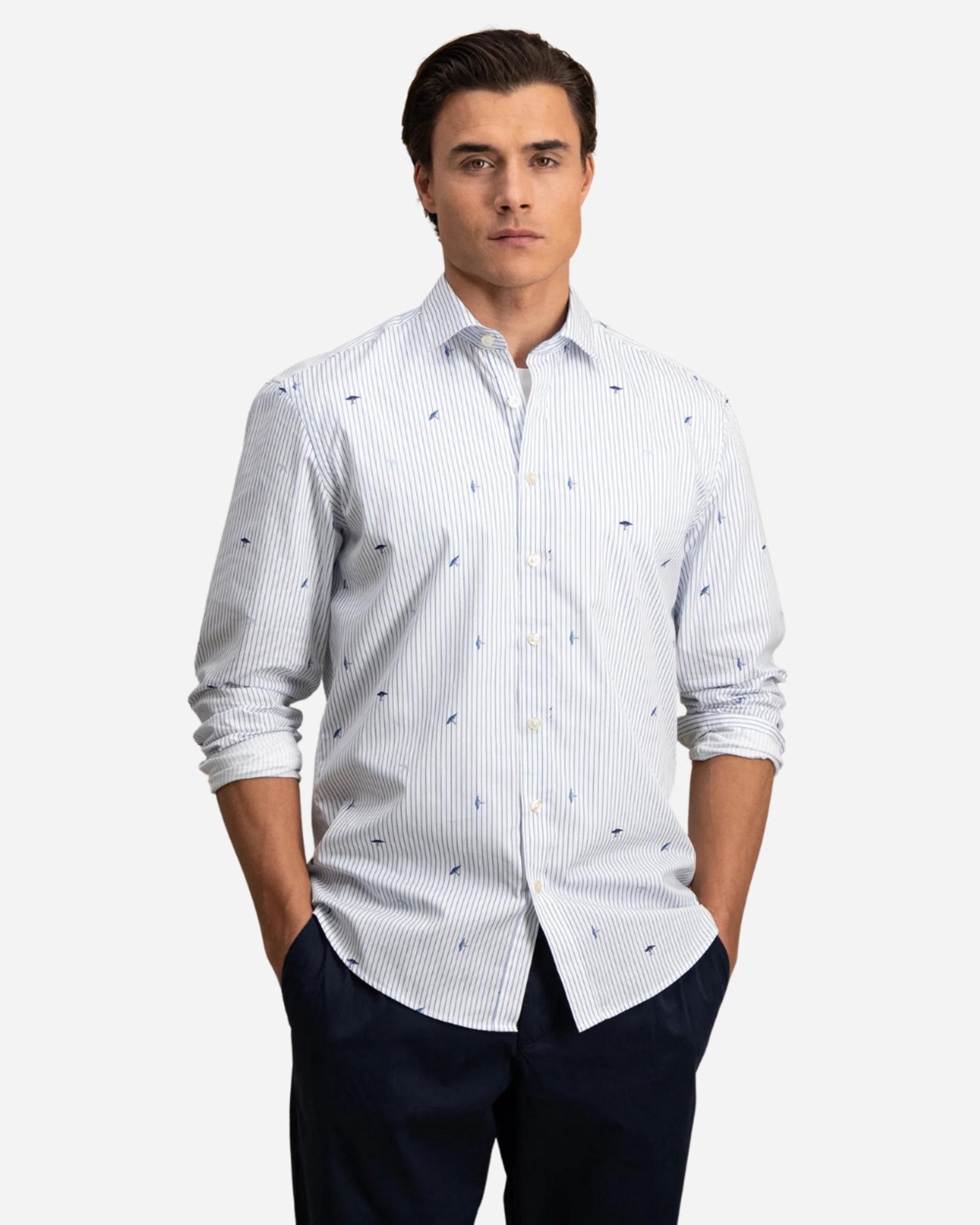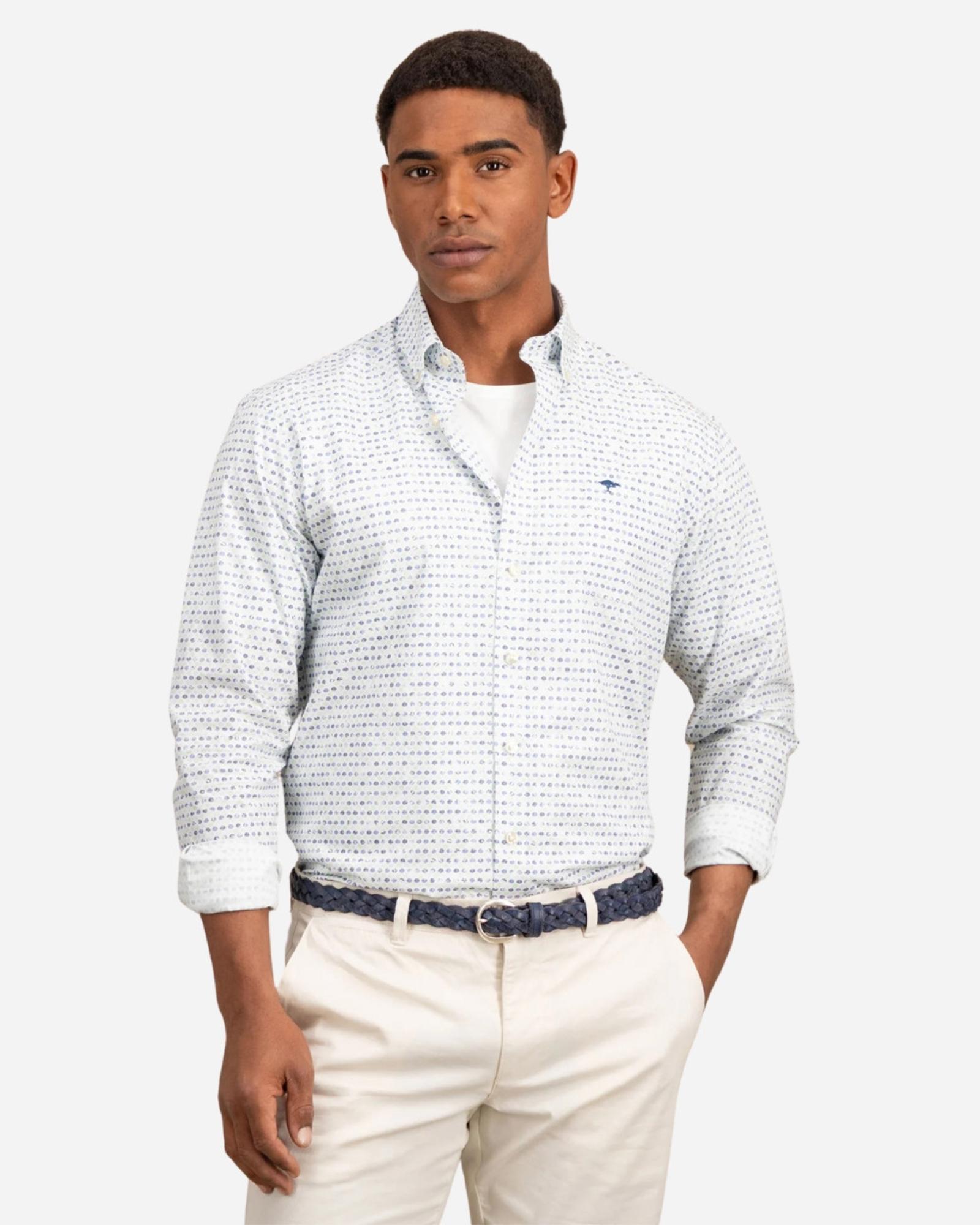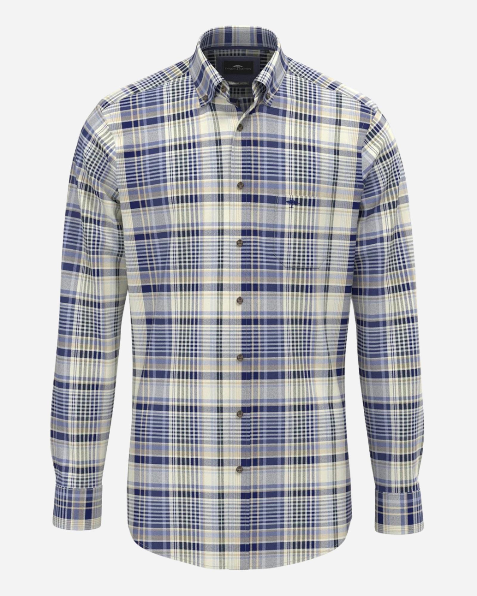 Son design à rayures bleu marine apporte une touche sophistiquée et dynamique, idéal aussi bien pour le bureau que pour une sortie chic en ville. Le logo Fynch-Hatton subtilement disséminé sur la chemise affirme votre goût pour l’excellence et l’authenticité, avec cette signature emblématique qui fait toute la différence. Portée avec un chino beige pour une allure élégante ou un jean brut pour une décontraction maîtrisée, cette chemise s’adapte à toutes vos envies. Style, confort et qualité premium, elle coche toutes les cases. N’attendez plus, adoptez la signature Fynch-Hatton dès maintenant !