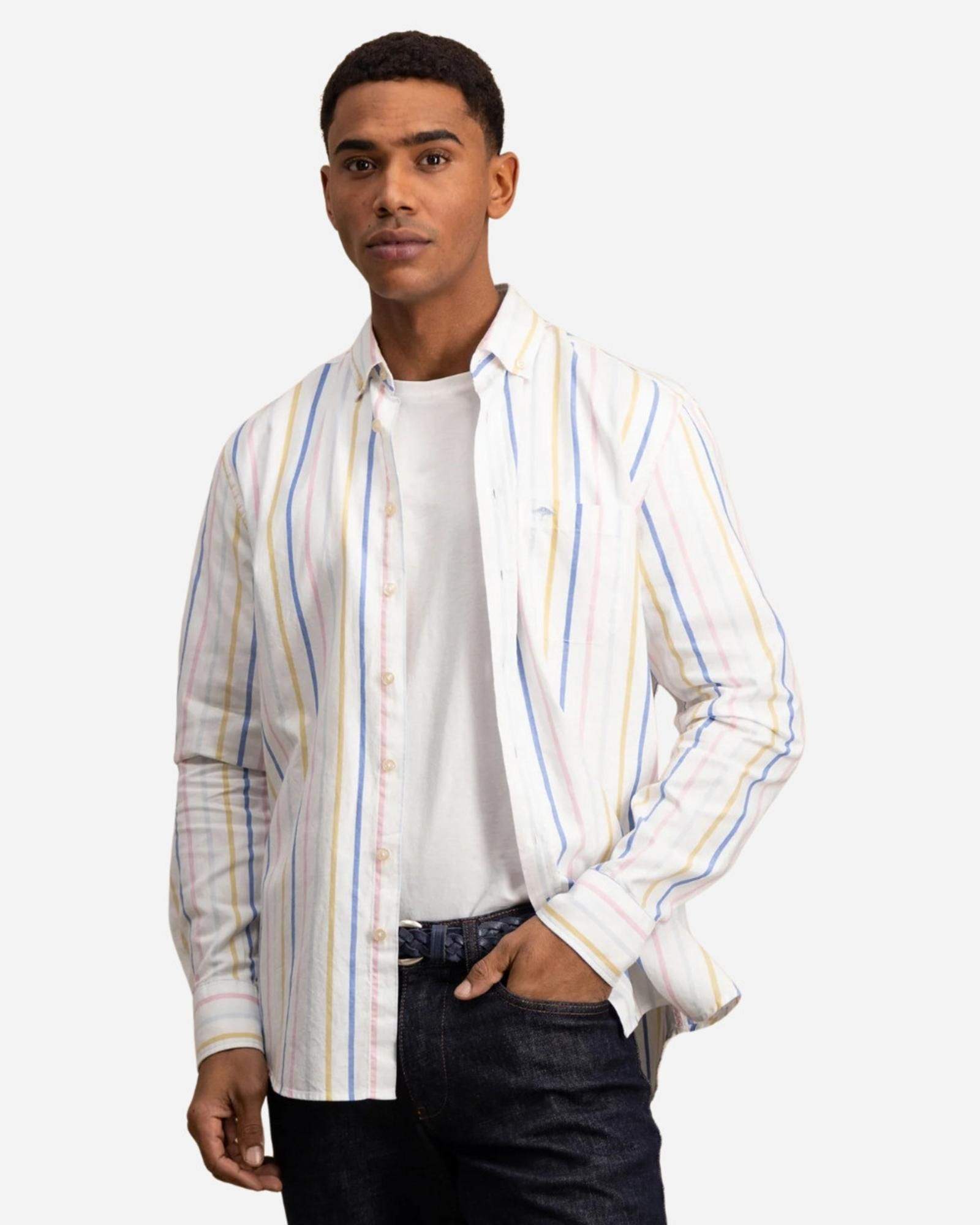 <!-- Découvrez l’élégance avec cette chemise rayée avec logo Fynch-Hatton, un incontournable du vestiaire masculin raffiné. Confectionnée en 100 % coton haut de gamme, elle vous enveloppe de douceur tout en garantissant une respirabilité optimale, parfaite pour une tenue impeccable du matin au soir.