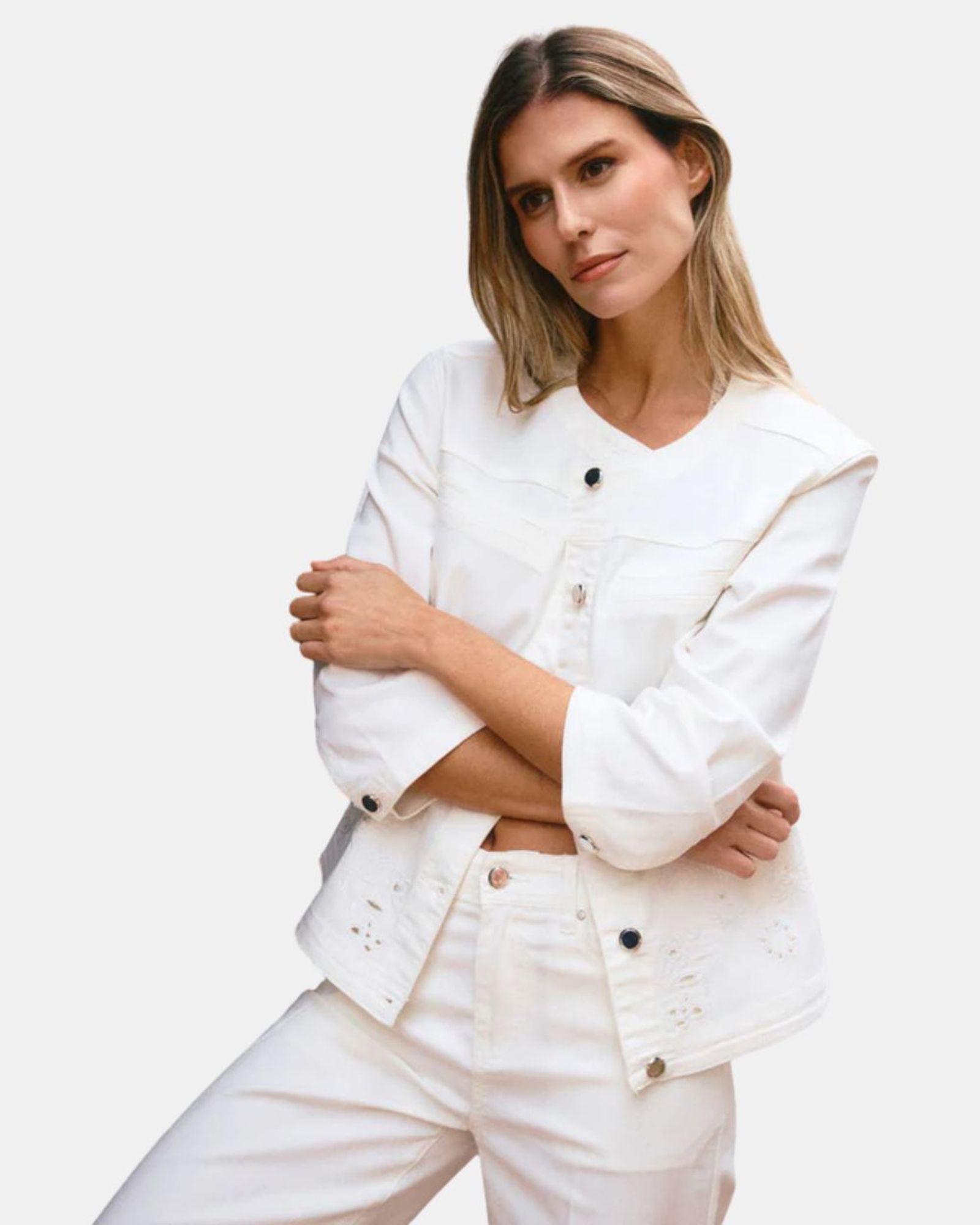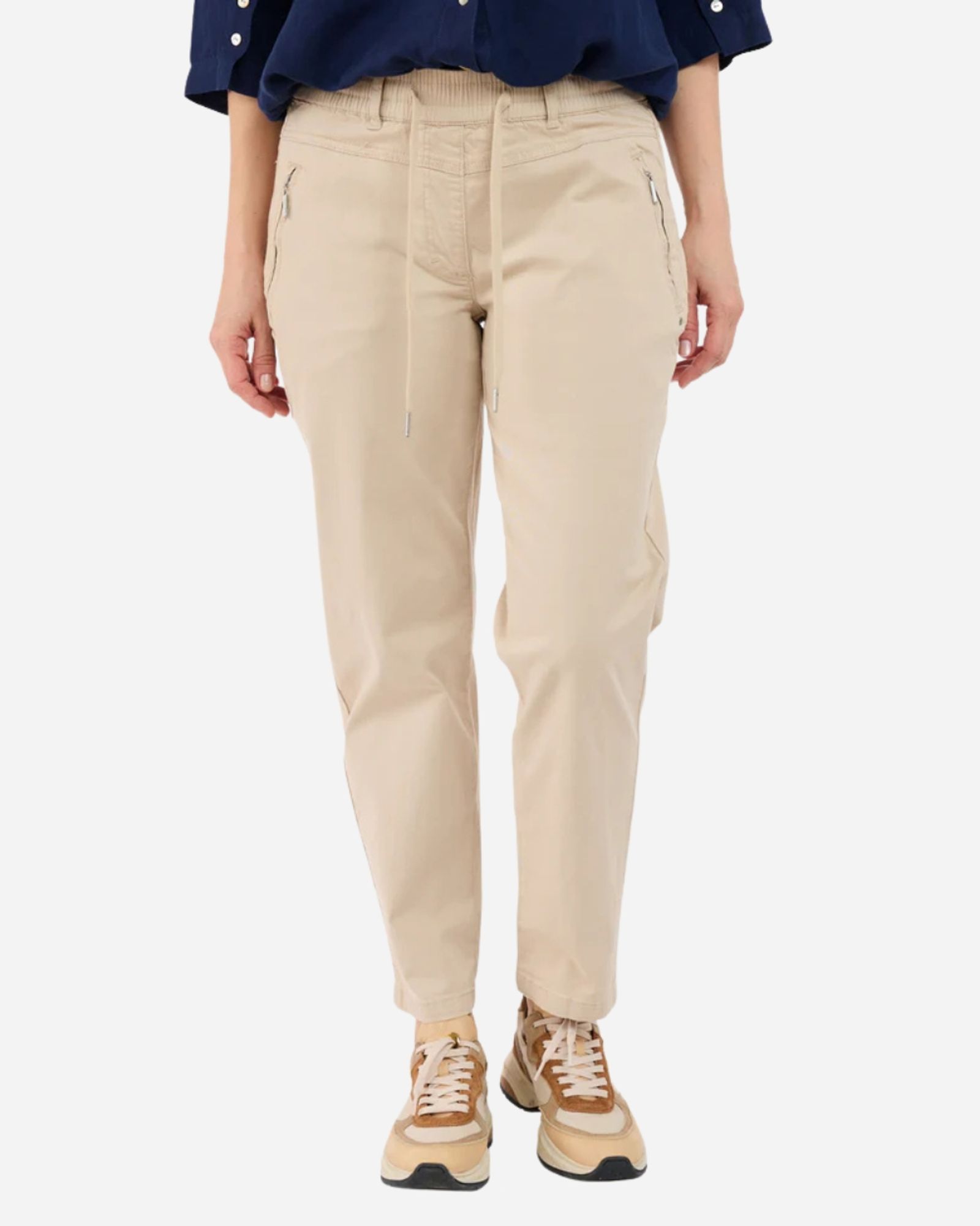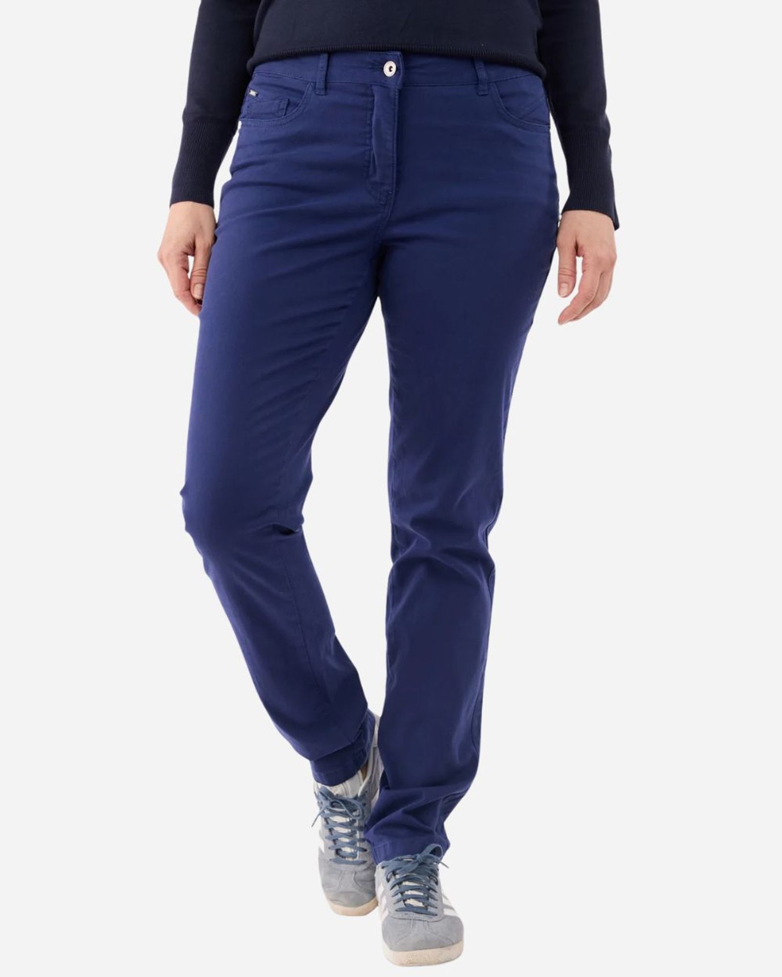 Chic et moderne, ce pantalon est une pièce idéale pour composer des tenues élégantes au quotidien. Sa coupe fluide et structurée allonge la silhouette tout en offrant un tombé confortable. Les détails de boutons dorés sur les côtés rappellent l’inspiration marine et apportent une touche raffinée et originale. Sa matière composée de 60 % coton, 37 % lyocell et 3 % élasthanne garantit un tissu doux, respirant et légèrement extensible pour un confort optimal tout au long de la journée. Facile à associer avec une blouse, une chemise ou un top plus décontracté, ce pantalon combine parfaitement style, élégance et confort.
