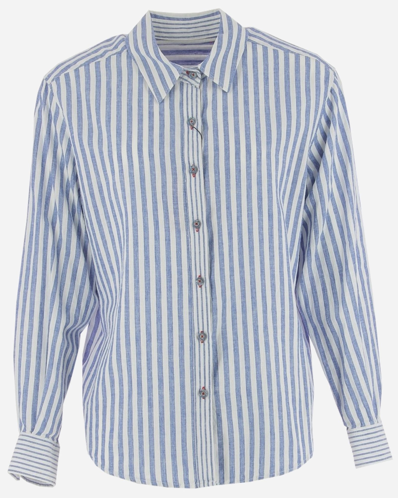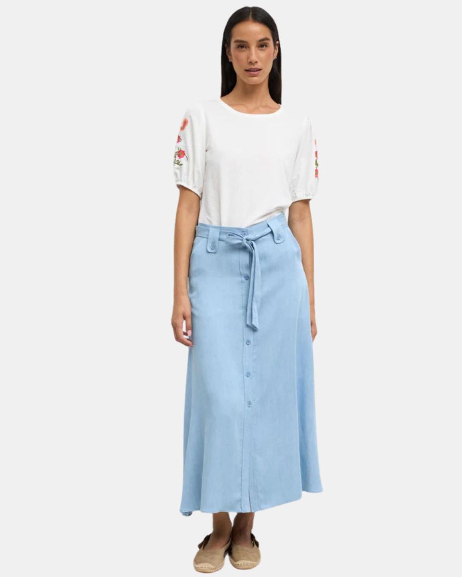 Ce pantalon taille haute à jambes larges de la marque BARILOCHE se distingue par son style élégant et structuré. Ses boutons dorés latéraux ouvrants apportent une touche raffinée et moderne. Confectionné dans un mélange de coton, lyocell et élasthanne, il offre confort, douceur et une belle liberté de mouvement.
