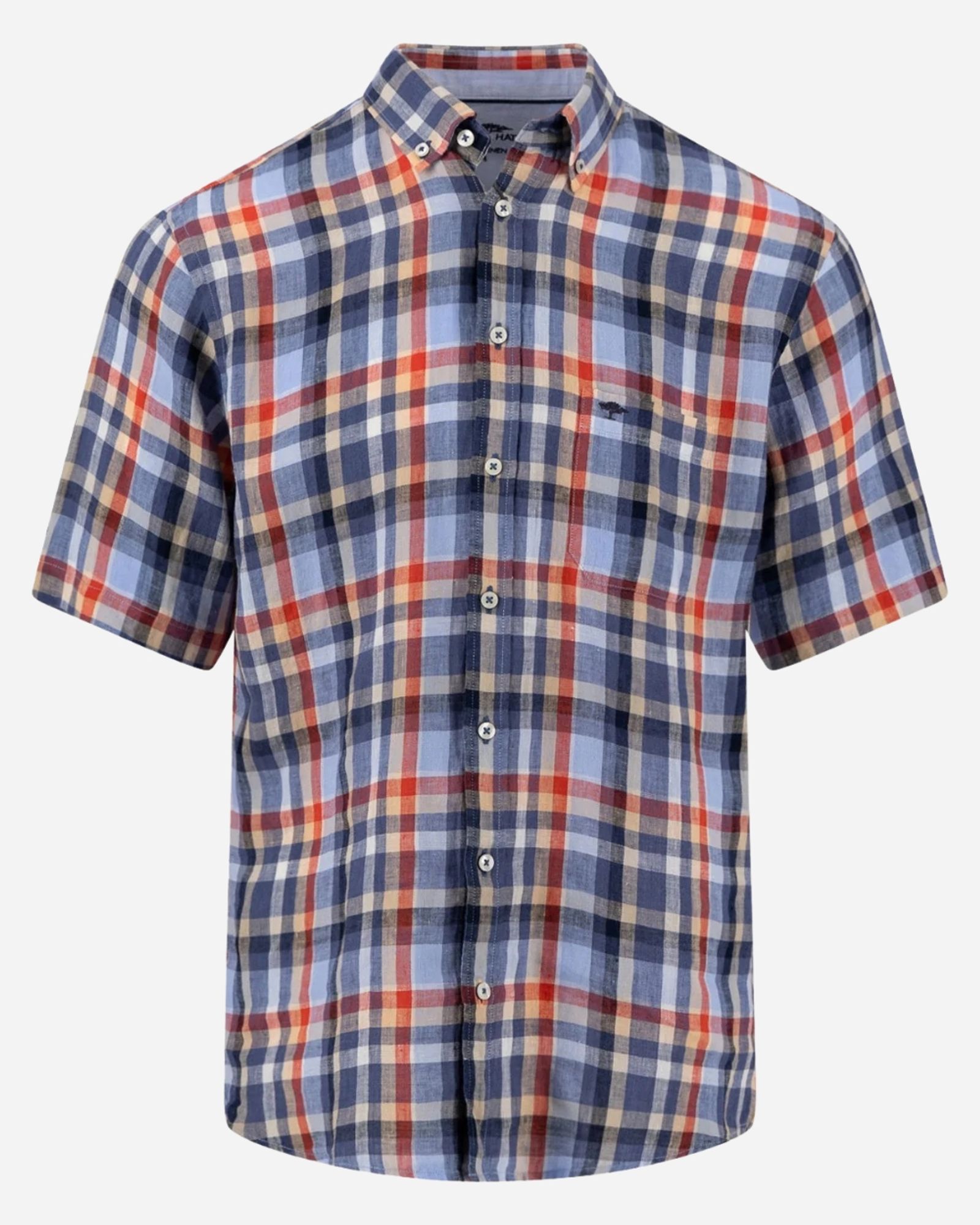 <!-- À motifs et agréable à porter, cette chemise Fynch-Hatton apporte une touche élégante à votre look. Le motif orange et bleu sur l’ensemble du tissu offre une apparence moderne, mais discrète, qui s’intègre aisément aussi bien dans un contexte professionnel que décontracté.